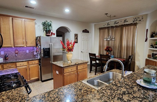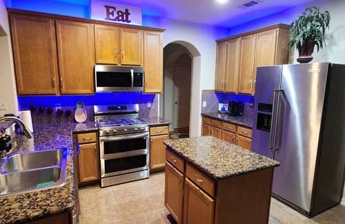 Stream the game or your favorite shows while shooting pool on the 8ft table in the game-room. Private backyard with gazebo and fire-pit provides a relaxing space to unwind at the end of the day.