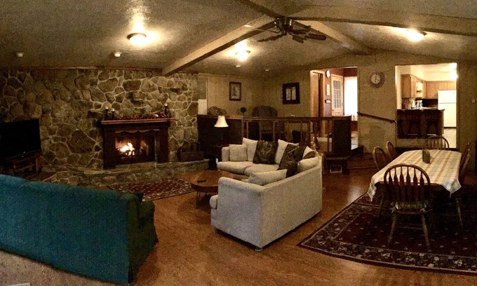 Ideal for family gatherings, featuring a large great room with fireplace, that exits onto a patio and open yard area.
