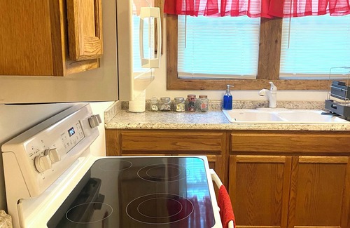 Full renovated, new appliances. Washer & dryer with complimentary detergent. Games and books for all ages. Fully equipped kitchen & dining area. Complimentary tea, coffee, sugar, stevia, and creamer. Service for eight. Pots, pans, utensil, and everything you need for a home cooked meal.