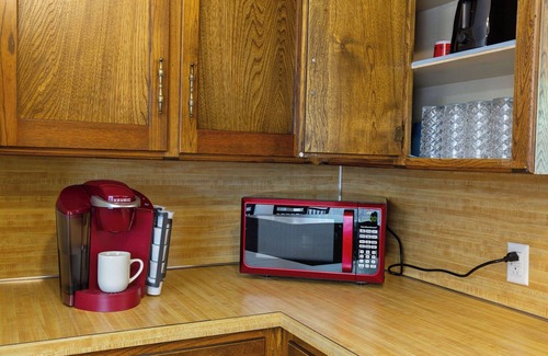 ✔ Keurig Coffee maker with lots of K-cups, creamer, and sugar