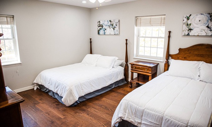 This beautiful two-story home sits minutes away from MSSU college and has the ability to host 21 guests comfortably. Our bedrooms are set up perfect for families to get together, allowing several single bed options for kiddos! Our kitchen comes stocked with basic essentials like seasonings, oil, coffee, creamer, ice, napkins, paper towels, etc. making it feel like you never left home. Our back deck has a gas grill that is open for use with propane included so having your cookout is no problem. The kitchen does have grill utensils available! This home comes equipped with: