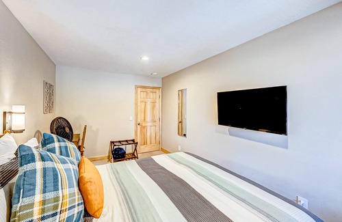 At the home itself, the wraparound deck offers a gorgeous mountain view and the perfect perch for morning coffee or evening cocktails. Inside, you’ll find abundant natural light throughout the main living space, with exposed beams, high ceilings, and a cozy cabin vibe. The full, modern kitchen boasts stainless steel appliances, and there’s plenty of mealtime seating between the kitchen barstools and dining table. After a day outdoors, relax in the great room by the wood-burning fireplace. Entertainment options include four streaming-capable TVs, board games, and free high-speed WiFi. For those looking to get some work done, there is a quiet desk space that is perfect for a work-from-home setting or catching up on school work. Step out for dinner or fire up the gas grill for an easy cookout. When bedtime calls, four well-appointed bedrooms await, with three on the lower level and one upstairs. Your Tahoe trip awaits - all that’s left to do is book.