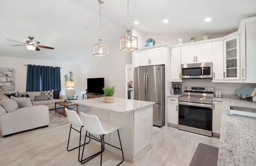 This thoughtfully designed 4-bedroom, 2-bathroom home is a true oasis, offering everything you need for a memorable stay. As you step inside, you'll be greeted by an inviting, open-concept living space. The interior exudes a coastal charm with modern amenities, ensuring a relaxing and enjoyable vacation.
