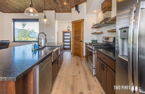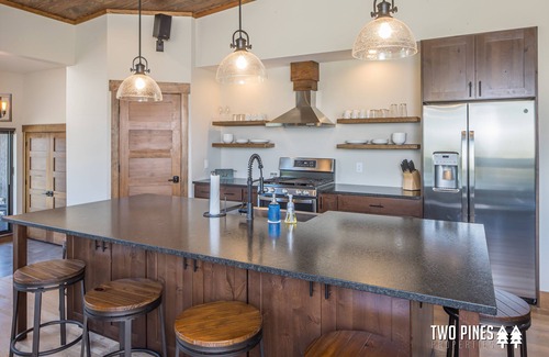 Welcome to 461 Fourpoint! This 2 bedroom + bunk room, and 2.5 bathroom luxurious mountain modern home is located "Mid Mountain" in the gorgeous Antler Ridge neighborhood. Relax and enjoy the amazing views from your private hot tub, or cozy up in the living room in front of the gas fireplace. This location is ideal for all summer and winter activities in Big Sky!