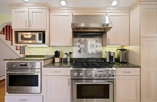 Full kitchen with stainless steel appliances and cooking utensils. Ample countertop space. Coffee and tea. Option of four-person dining table, or spacious, elegant dining room where an eight-person table.