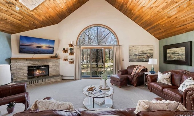 This exquisite 3-bedroom, 4-bathroom home nestled in the woods of Monroe is just minutes from gorgeous NY state parks, ski resorts, and wineries. This spacious house features modern amenities and magical rustic cabin vibes.