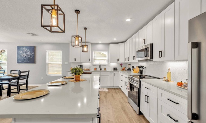As you settle into this 4-bedroom, 3-bathroom rental, you'll find a living room and air conditioning. Enjoy the free WiFi and TV. Bathroom amenities include towels, shampoo, and toothbrushes and toothpaste. Prepare a home-cooked meal in the kitchen, complete with an oven, a stovetop, and a dishwasher, as well as a coffee maker, a microwave, and cookware. And there's a washer/dryer, so you can even pack a bit lighter. Other amenities include bed sheets, an ironing board, heating, and a dining table.