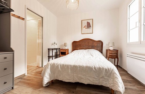 The house has 2 "night" areas, with on the one hand, three bedrooms (1 bedroom with 2 single beds and an en-suite bathroom and a double bedroom and bedroom with 2 single beds with shared bathroom)