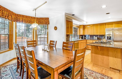 If you’re planning your next getaway to the Evergreen State, Sare’s Rose Garden is exactly the vacation rental you’ve been looking for! This spacious, 3,000 sq. ft. house features the best amenities to make your stay unforgettable. The living room area has a set of comfortable, black leather sofas in front of a fireplace and flatscreen TV for your convenience, and the fully-equipped kitchen features granite countertops and modern stainless steel appliances that will make cooking a breeze. Sit on the massive deck while taking advantage of the gas grill and treating everyone to a tasty BBQ, or play a little basketball in the landscaped backyard court area.