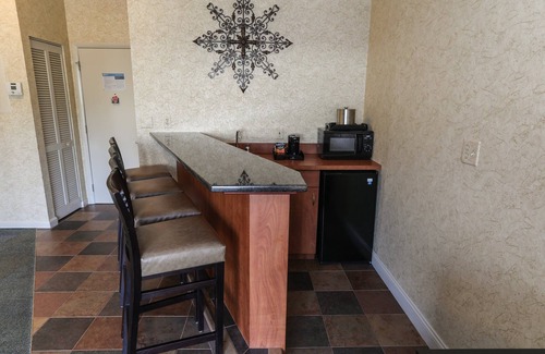 • Kitchenette: small serving bar, microwave, mini-fridge