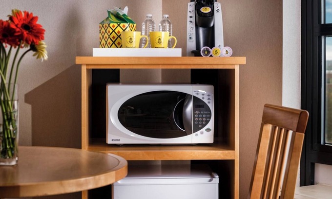 - Microwave, coffee maker, and a mini-fridge;