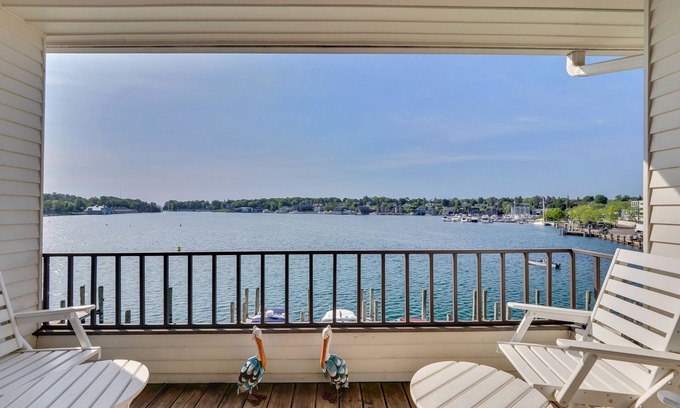 With seating for 7 and the ambience of a fireplace, don't forget to enjoy the balcony as the boats sail in and out of Round Lake.
