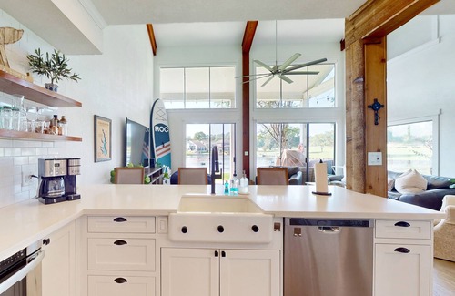Wake up in the morning and walk into the living room for a beautiful view of the Lake, just feet from your back door step. The house is equipped with a kitchen designed to make it a breeze for you to feel at home. With a full-sized refrigerator, stove, microwave, toaster, oven, and coffee maker, as well as all of the little details that make a home feel like home, you have everything you need to get into a routine of relaxation