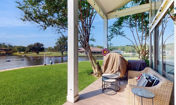 Escape to Casa de Suenos (House of Dreams) located lakefront on Lake Conroe in Montgomery, Texas. Nestled within the gated April Sound Country Club, the 1800 square foot “Casa” provides you everything you need to get away for a week or a weekend, and fish, kayak, walk, swim and enjoy your morning coffee or evening beverage peacefully on the patio overlooking Lake Conroe.