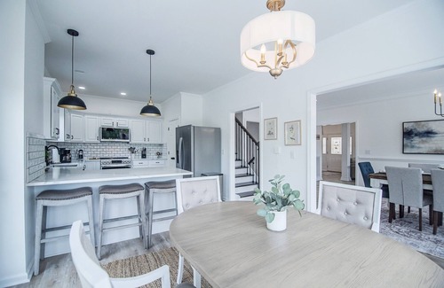 With new flooring throughout, three completely renovated bathrooms and a newly introduced game room in the basement for kids to enjoy, it is sure to be the best family vacation ever. There is a main floor master bedroom with brand new bathroom. The basement bunk room has a 65” TV and the main basement area has a foose ball table, sofa, chairs and PAC Man arcade games as well as another 65” smart TV. The basement bathroom has been completely remodeled. All new stairs throughout the home brings another touch of elegance. The large living room seats 8 while the dining room seats 8 and the kitchen seats 9. There is seating outside near the fire pit and on the deck, there is a huge sofa with ottomans and more. There is no shortage of space in this home or outside.