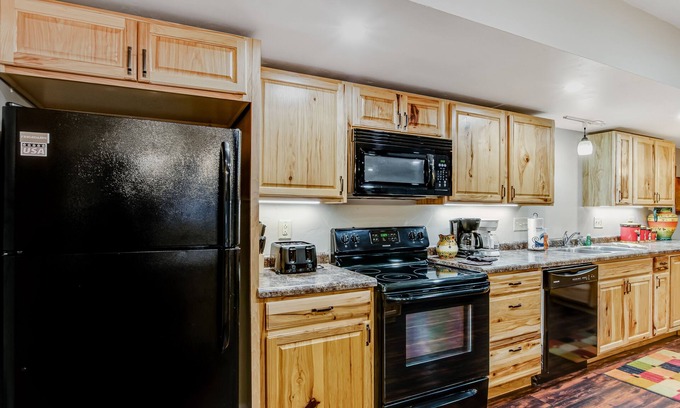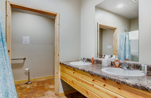 This single-level rental is set entirely on the ground floor. You’ll love the expansive common area, highlighted by a roomy full kitchen and a lake-view wall of windows. Four private bedrooms provide quiet spots to unwind, while two full bathrooms are each equipped with two stand-alone showers (four showers total). Extras include complimentary WiFi and a dedicated laundry room.