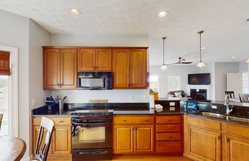 This well-appointed home includes a king bed, double bed, and twin bed, ensuring ample sleeping arrangements for everyone. The fully equipped kitchen boasts modern appliances, including a fridge, microwave, and dishwasher, making meal prep a breeze. After a day of fishing or exploring nearby golf courses, unwind with a dip in the seasonal outdoor community pool.