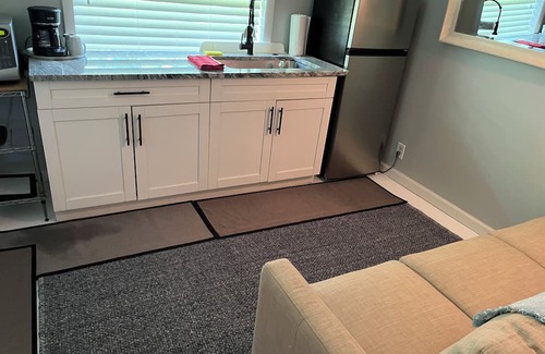 Bright, clean & well appointed. Private patio entrance. Includes bedroom, private bathroom & sitting room with TV, microwave, full size refrigerator, cooktop & sink.