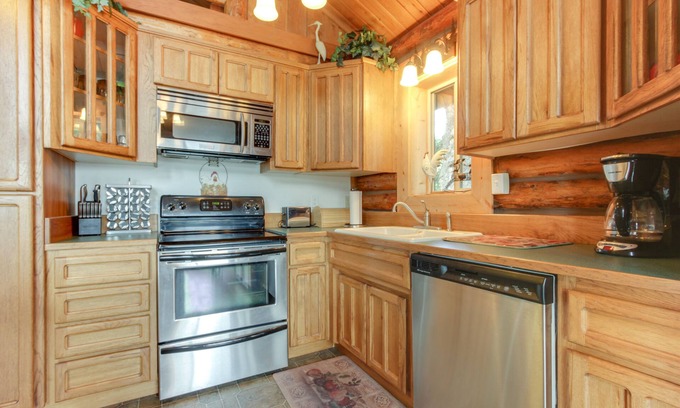 The home features amazing views of the lake from the spacious deck, as well as a fully equipped kitchen and homey living area. Wide windows let in plenty of sunshine and provide more chances to admire the view. Free WiFi is available for your convenience.