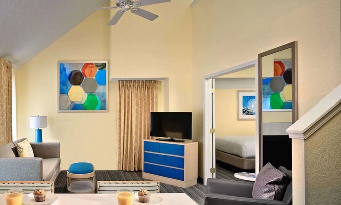 The pet-friendly hotel's spacious and contemporary guest rooms feature king or queen beds and a range of conveniences, including flat-screen televisions, free Wi-Fi, and a full kitchen equipped with a stovetop, microwave, dishwasher, and full-sized refrigerator and freezer. You can stock up on the essentials at the hotel's 24-hour minimart or cook a meal in the outdoor grill area. You'll also have the opportunity to make the most of the outdoor fitness facilities, including a sports court and seasonal pool. Free parking and grab-and-go breakfast are also provided.