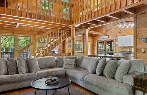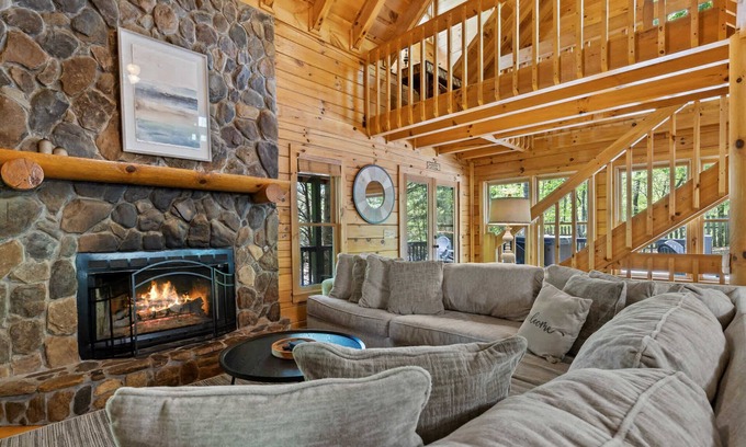 Escape to Water’s Edge, a mountain retreat nestled on over an acre of forested land, less than 10 minutes from downtown Blue Ridge. Ideal for families and groups, this 3-story log cabin features beautiful wood paneling, a game room, a cozy wood-burning fireplace, and a spacious wrap-around deck with outdoor dining, hot tub, and fire pit. With hiking trails nearby and Lake Blue Ridge Marina 5 minutes away, this cabin offers the perfect balance of seclusion and easy access to local attractions.