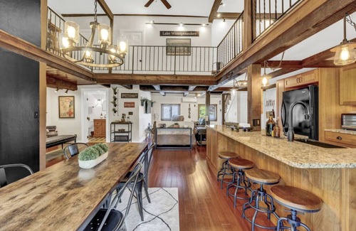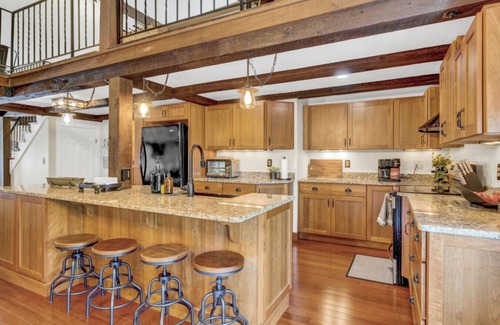 You will not want to leave this place, guaranteed! Spacious, high-end 3BR condo in the heart of Wolfeboro! Sleeps families in style with open-concept living, gourmet kitchen, games, smart TVs, popcorn & gumball machines, and kids’ loft. Steps to town docks, dining, shops. Historic Colonial Arms building with cathedral ceilings, plush linens, and bay views. 2 parking spots + overflow.