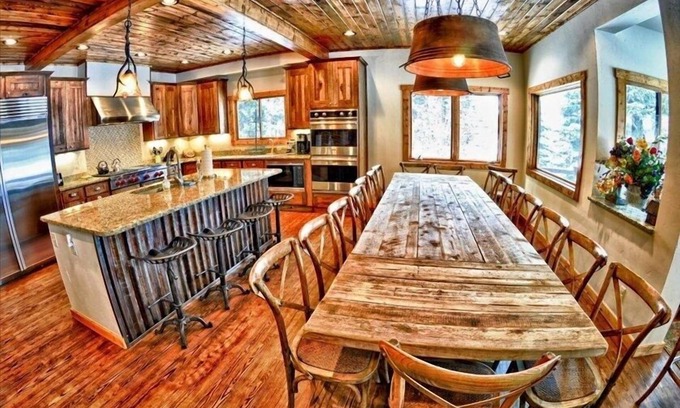 This stunning home offers expansive entertaining areas both inside and out, complemented by a private footbridge crossing Vasquez Creek. The Lodge on Vasquez Creek features 8 bedrooms and 8.5 bathrooms, making it one of the largest rentals in the area, with each bedroom having its own en suite bathroom for maximum privacy. Recently finished with all the latest upgrades, including high-end finishes and brand-new furnishings, our home provides a spectacular vacation rental experience.
