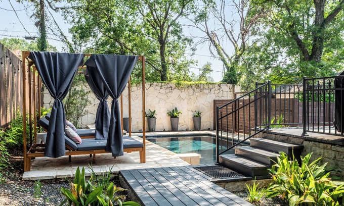 Spacious Luxury Home with heated pool and spa - 5 mins from downtown is located in Travis Heights. Spacious Luxury Home with heated pool and spa - 5 mins from downtown provides accommodation, featuring Bedding/Linens, Wellness Facilities, Fireplace/Heating, among other amenities. This House features Bedding/Linens, Wellness Facilities, Fireplace/Heating, to make your stay a comfortable one.
