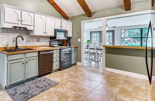 Head to 'Wayside Farm' for a relaxing retreat with the whole family. Located on a sprawling working farm surrounded by Spanish moss, this 4-bedroom, 3-bath Micanopy vacation rental is the ideal place to find rest and relaxation. Spend sunny days playing golf at a nearby course or immerse yourself in nature at Silver Springs State Park. When you need to beat the heat, return to the house for a cold drink and a refreshing swim in the pool. A peaceful Florida stay awaits!