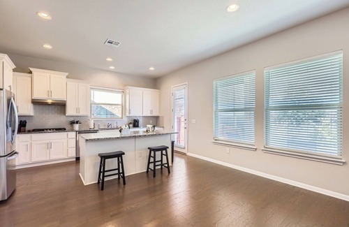 Professionally managed 24/7 by Texas Corporate Homes who specializes in insurance temporary housing. Experience Cedar Park living at its best in our 4-bedroom house on in gated community on Clearwell St. Boasting 4 baths and 3,097 sq ft of space, it comfortably accommodates large families. The master bedroom with a king bed is nestled on the first floor, offering privacy and comfort. The property has a 2 car garage and is pet-friendly with a fenced area for your furry companions.