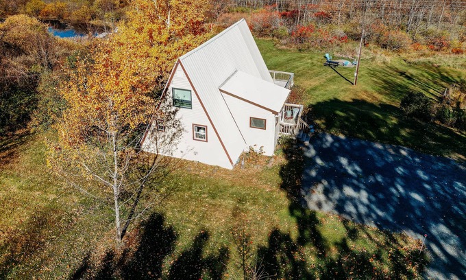 A uniquely spacious, mountain view A-frame provides nearly 1,600 square ft of 4 season family-friendly entertainment with a private pond. Set on nearly 3 acres, this private home provides the perfect getaway from NYC to visit the Catskills during foliage season, hiking in the summertime, and skiing in the wintertime. Endless indoor and outdoor activities for the family, groups of friends, or couples to enjoy! Centrally located, reach FOUR incredible ski resorts in under 45 mins.