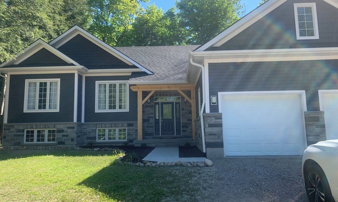 Spacious & Modern Bungalow on Cul-de-Sac: Large Deck, Wood Lot, Steps to Beach is located in Tiny. Spacious & Modern Bungalow on Cul-de-Sac: Large Deck, Wood Lot, Steps to Beach provides accommodation, featuring Parking, Barbecue/Outdoor Cooking, Kitchen, among other amenities. This House features Parking, Barbecue/Outdoor Cooking, Kitchen, to make your stay a comfortable one.