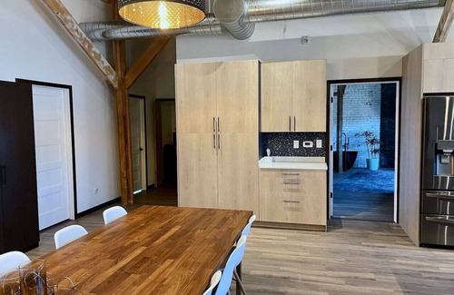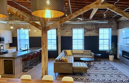This 2,300 square foot loft has tons of room, in a safe neighborhood, with easy access to everything. You`ll love the full kitchen, 12-seat dining table, & room to lounge. Features a jacuzzi tub, rain shower, 2 electric fireplaces, shuffleboard table, 75` big screen tv & super-fast internet! Free on-street parking. Enjoy restaurants, a brewery, ice-cream shop, retail shops, a cute park, and family activities like Creative Adventure Lab and the River Museum, all within a short walk.