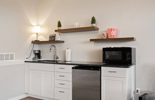 The kitchen is stocked with all necessary appliances including a waffle maker and hot beverage bar. You’ll also find sufficient dish ware and utensils for large groups.