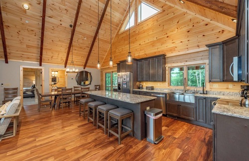With stunning features inside and out, Aspen Summit has all that you need for a fantastic vacation no matter when you visit. From a huge open concept main level, with plush and cozy furnishings, a gas fireplace, and a beautiful kitchen, there is plenty of room to gather together or enjoy some time in your own space. With 6 bedroom suites, there is space for everyone to relax and unwind in privacy at the end of the day. The game and den area downstairs is the perfect place where rainy days can turn into days of friendly competition around the pool table or shuffleboard table with the warm of the other stone fireplace radiating into the room. As evenings roll around, gather outside around the fire pit or on the covered back deck in front on the outdoor fire place and immerse yourself in some great conversation among friends and family. With a fantastic location, you are never far from all the action. Located just minutes from the four-season Wisp Resort, and a short drive from the lake, state parks, and fantastic restaurants, there is plenty for you discover and indulge in no matter the season! Ski or snowshoe in the winter or rent a boat, go hiking, or try out ASCI in the summer, and enjoy everything the area has to offer all year round. Book your stay at Aspen Summit today!