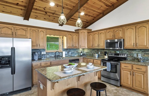 Great for your next upscale mountain visit to Murphy, this luxury 4-bedroom, 4-bathroom cabin has it all to serve as the ultimate R and R retreat! Spend your days relaxing, fueling friendly competition in the game rooms, or simply savoring a cocktail and taking in sweeping mountain vistas thanks to this vacation rental’s immaculate interior and exterior spaces. When you’re ready for adventure head to the Piney Knob Trail System or Cherokee Lake Recreation Area!