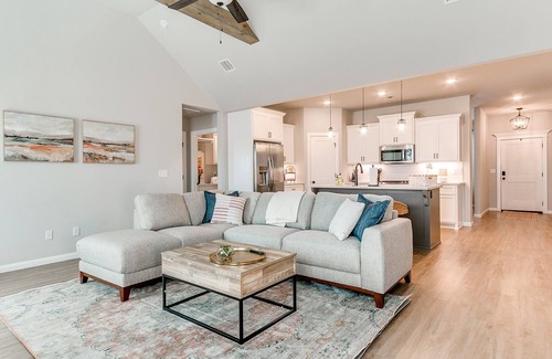 Our brand new construction offers a welcoming atmosphere with three generously sized bedrooms and a bonus room, perfect for turning into a playroom, study, or an additional guest room. With two beautifully appointed baths and a two-car garage, your family or group will have plenty of space to spread out and relax.
