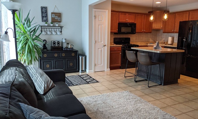 Our family loves family time, so we've left the main floor very open for entertaining. There is plenty of space in the kitchen to have large dinners or seating in the living room to watch the game on the TV. You'll have access to all the appliances in the kitchen (including slow cooker, ninja blender, coffee pot, kettle, standard pots, pans, & utensils, etc) and a shelf in the fridge/freezer. The tea and coffee bar are always waiting every traveler upon arrival.