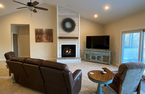 Enjoy the peaceful setting of this spacious home, which is just a short walk to the lake. You will have access to an uncovered dock just down the TVA path from the sloped backyard or you may use a covered slip at one of the community docks on a first come first served basis. Simply notify your host with your boat’s registration id to use the covered docks.
