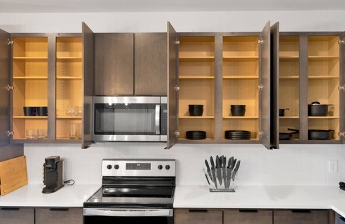 Unwind and catch up with your loved ones on the balcony while the food gets ready. When done, gather at the extra-large island and savor a delicious meal in a warm and inviting atmosphere.