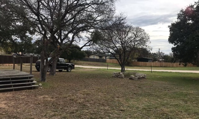 This property has huge oak trees and a wonderful open living/dining/kitchen space. Huge dining table that seats 12. A comfy couch, 3 recliners, a rocking chair & oversized chair & ottoman. There is also a screened in back porch for a fun outdoor space. Private lake community with a boat launch to beautiful Lake Buchanan!
