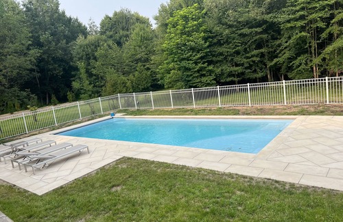 Welcome to your private getaway in the woods. This recently renovated home has all the amenities you need to make this a relaxing vacation. Take a dip in the pool, look for deer in the backyard, relax in the hot tub or just relax in comfortable Adirondack chairs as you take in the sunset.