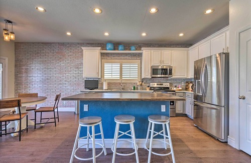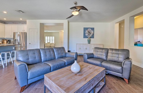 Relax in the warm Arizona sun with this modern vacation rental in Phoenix! This 4-bedroom, 2-bathroom home comes equipped with upscale furnishings boasting a contemporary twist and a fully equipped kitchen. Kick back on the private patio by resting in the shade of the gazebo, challenge a friend to a game of cornhole, or cozy up inside with a movie on the Smart TV. When you're ready for some area adventures, visit South Mountain Park or the Enchanted Island Amusement Park!