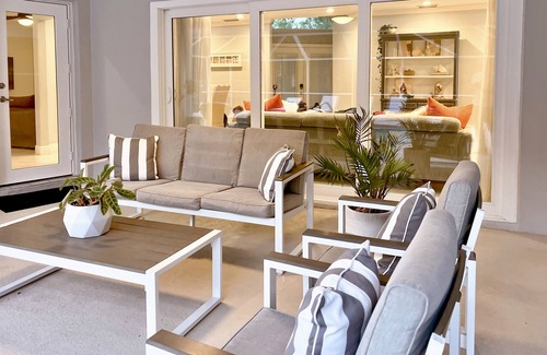 Step outside into your own private oasis, where a sparkling pool awaits. Take a refreshing dip or simply relax on the poolside loungers while soaking up the sun. The outdoor area also offers a shaded patio with fan, ideal for enjoying meals fresh off of the barbeque or sipping a morning coffee.