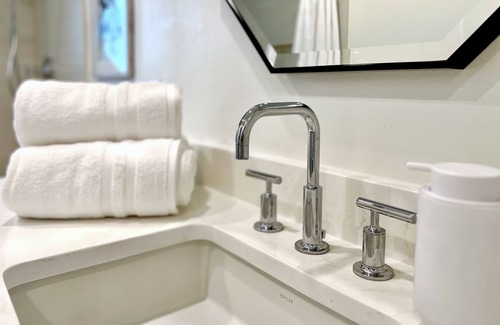 The primary bedroom boasts a king-sized bed with an elegant bathroom attached. The second bedroom enjoys a queen-sized bed while the final bedroom offers a nice bunk with a full-sized bed and two twin-sized beds. The bathrooms are clean and equipped with all the essentials you'll need during your stay.
