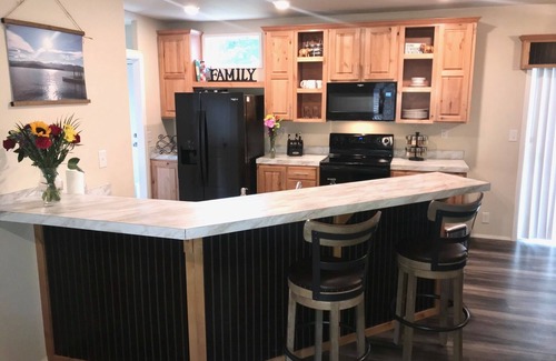 - Amenities include a fully equipped kitchen, dishwasher, ice maker, portable air conditioning units, central heating, free WiFi, 2 flat-screen Smart TVs, hair dryer, laundry machines, furnished deck, Traeger wood pellet grill, (pellets provided), 6 driveway parking spaces (plenty of space for a boat trailer), lawn, firepit and more!