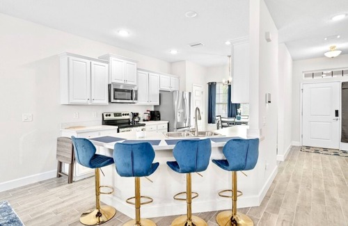 Recently upgraded and beautifully furnished throughout, this spacious and private four-bedroom home features an open floor plan with an upscale kitchen, counter-height seating, dining area, dedicated workspace, and a living room with Smart TV.