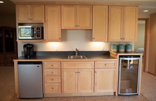 - Fully stocked kitchenette with microwave, sink, mini fridge, wine fridge, keurig, crockpot, hot plate, and everything else you may need.