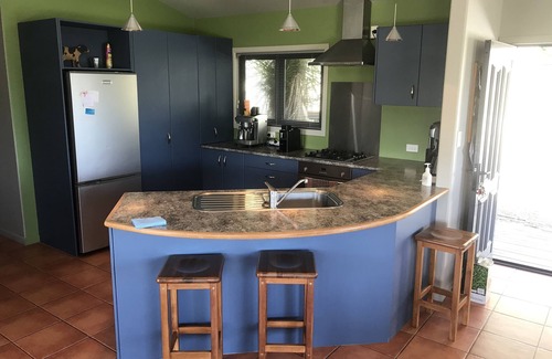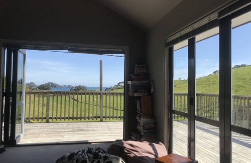 Elevated spacious private property set on one acre. No close neighbours. Enjoy your perfect coffee and breakfast at the outside table on the large full-length deck looking at the beautiful bay. Sunny spot with a flat paddock perfect for games and adventures.