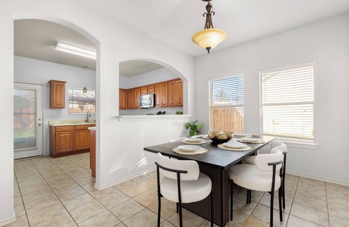 Recently upgraded and beautifully furnished throughout, this spacious and private four-bedroom home features an open floor plan with a full kitchen, dining area, and a living room with 55” Smart TV.